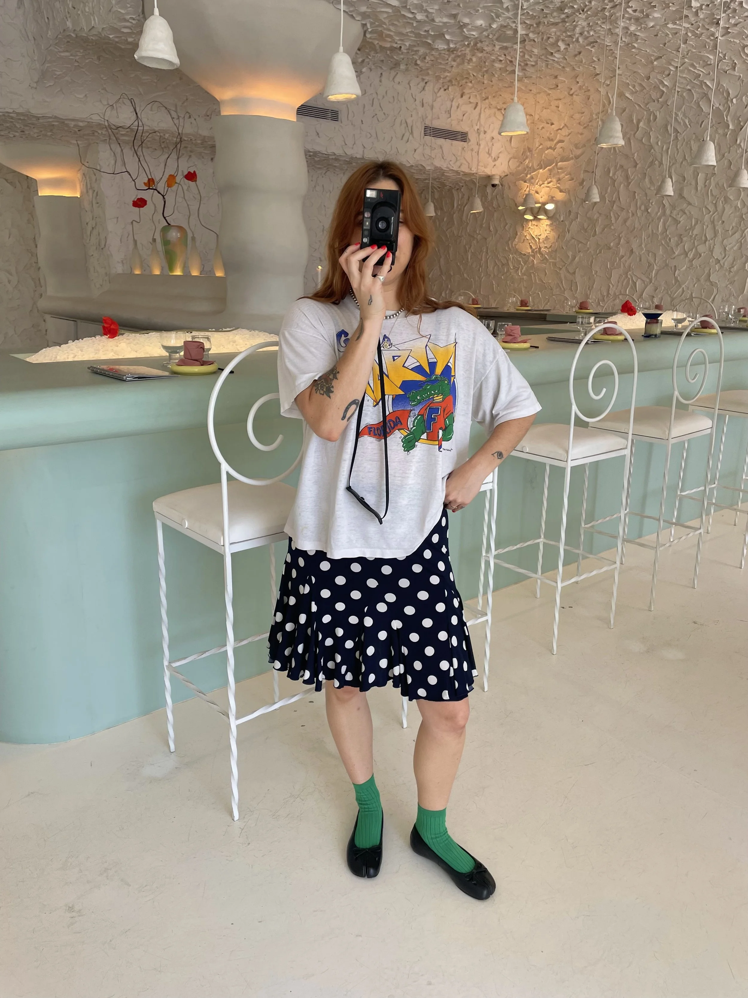 My style now is still fun and playful, I love colors and prints and vintage, and playing with proportions. I like to think that 19 year old me would think that 35 year old me has great style.